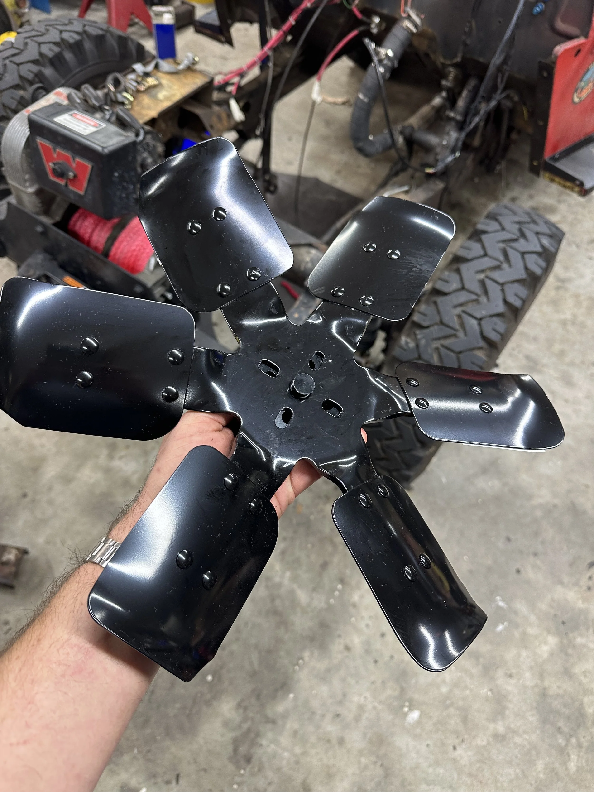 I played with some different flex fan designs, and even an electric one with a 190F Thermo switch, but ended up away from that again. Something about that electric fan noise that just doesn’t fit with a vintage jeep and it’s quiet motor.