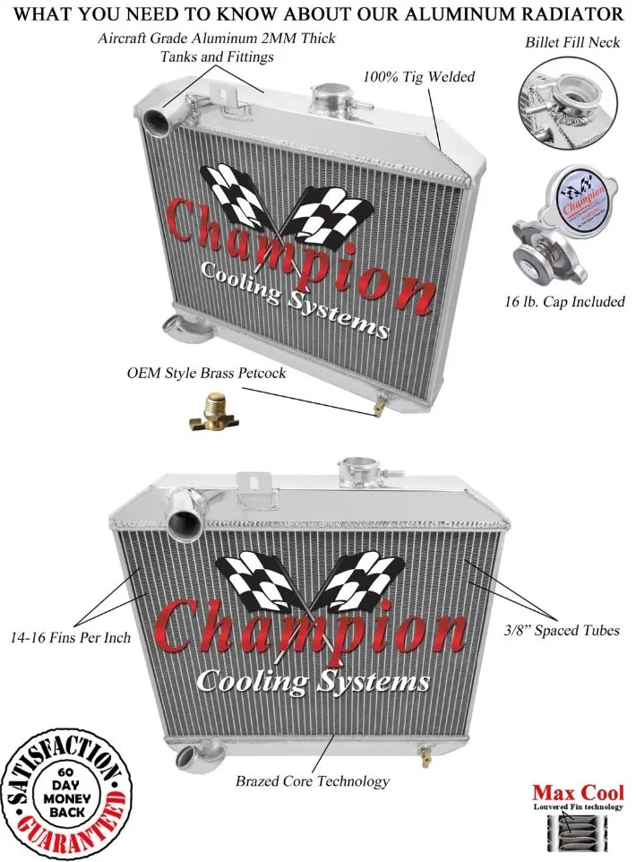 One of the parts places was selling aluminum radiators, widely varying in prices, but the majority seem to be made by Champion Cooling Systems, which appears to be a Spal company.